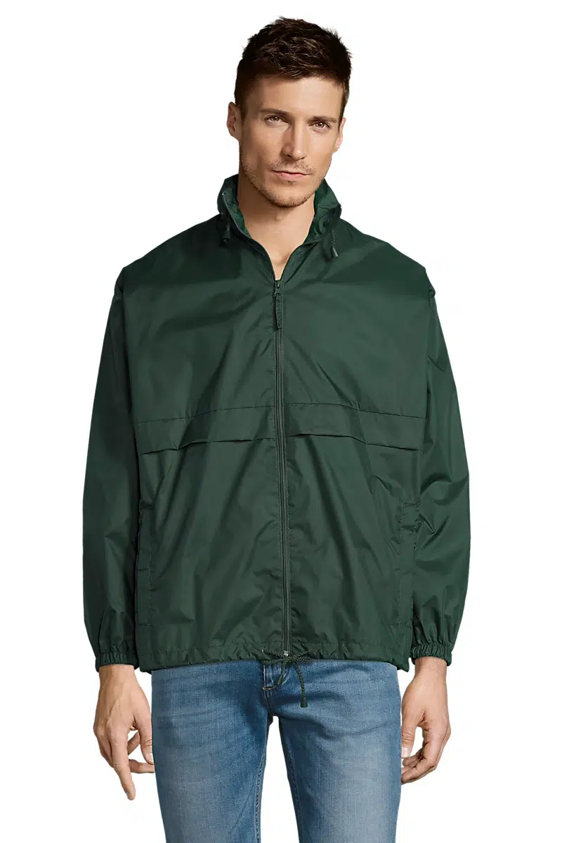 Capuche et cordon de serrage pliés dans le col