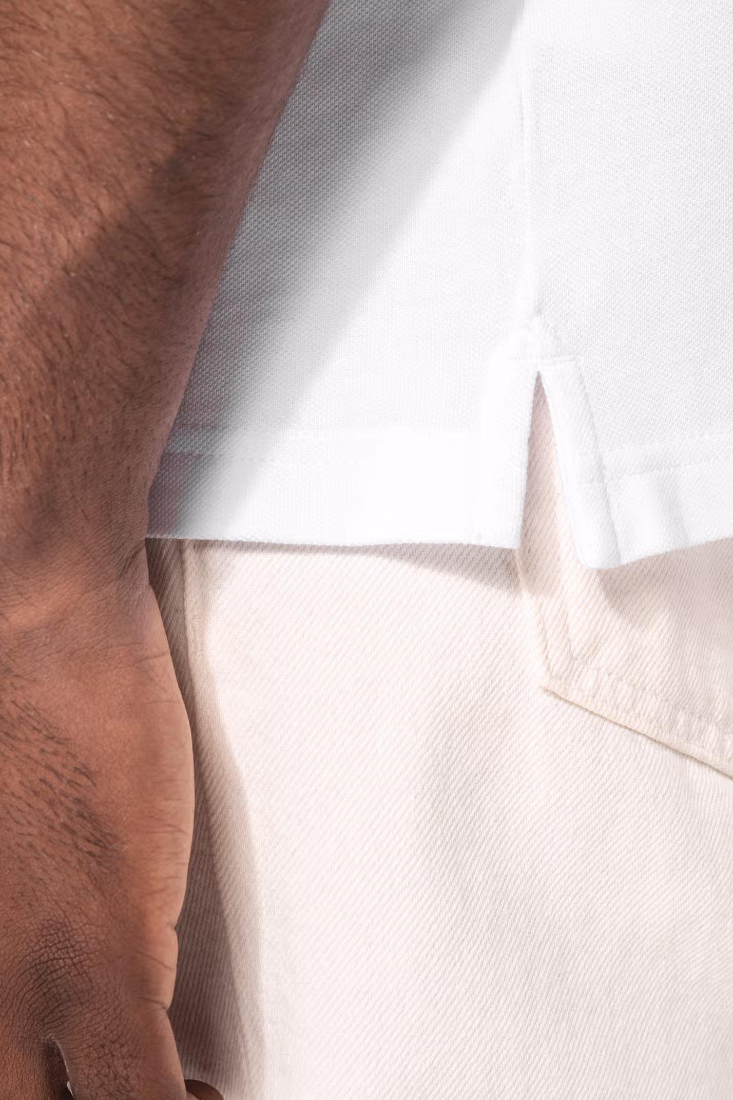 Coutures côtés. Finition double aiguilles bas de vêtement.