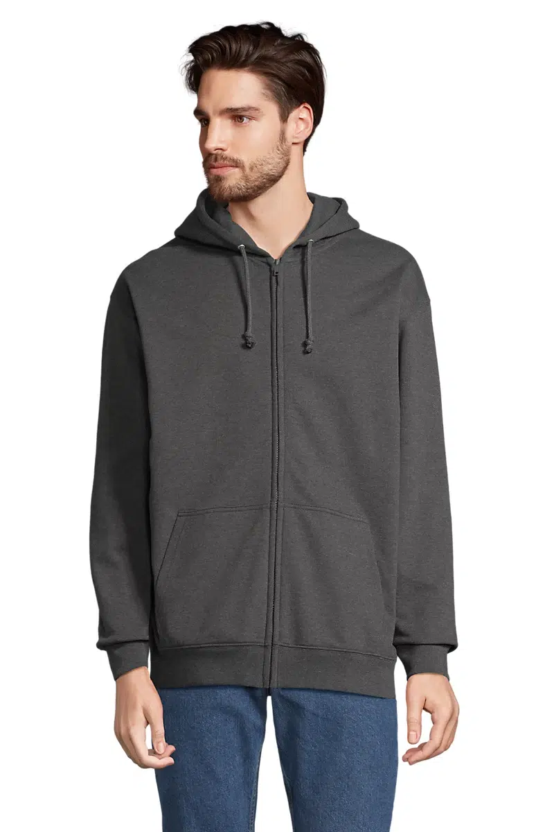 360 Gris chiné : 73 % coton / 20 % polyester recyclé / 7 % viscose