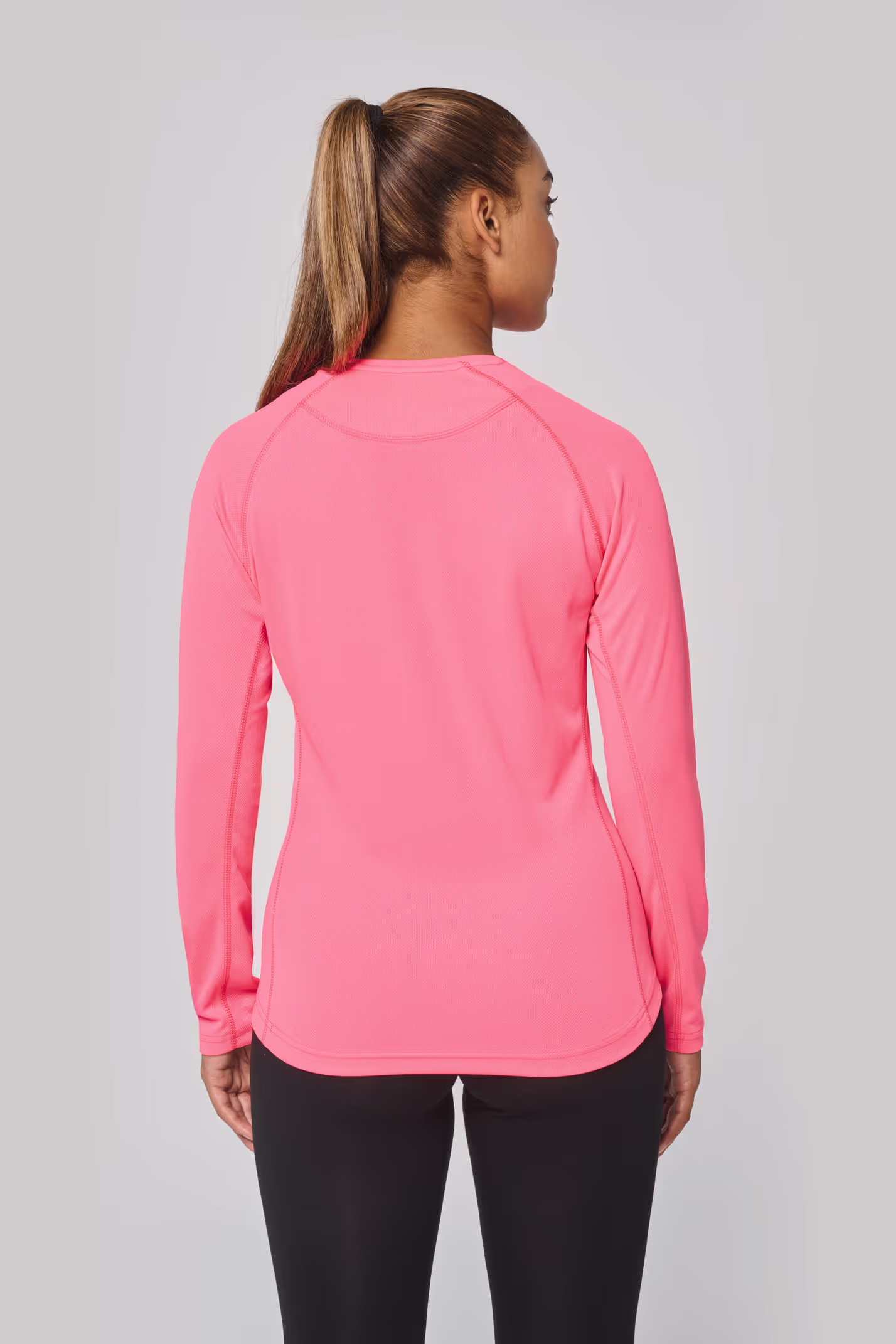 Finition double aiguille à l’encolure, bas de manche et de vêtement.